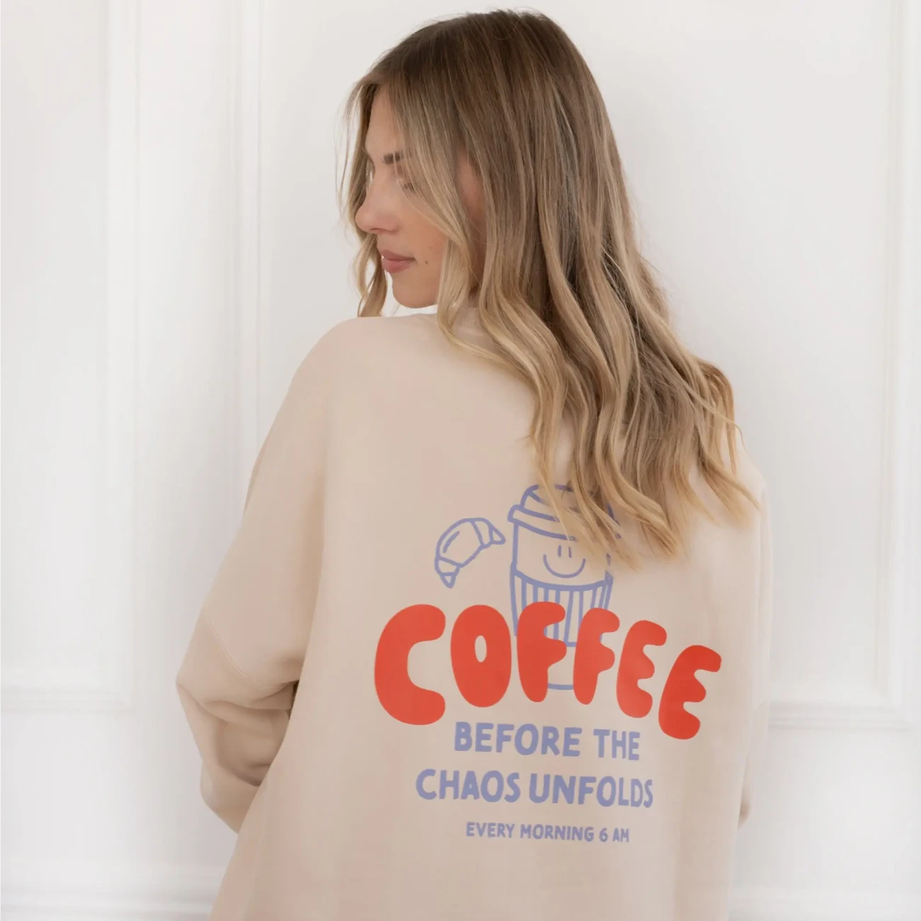 Den sætning rammer meget godt en morgen med børn. Det øjeblik, hvor der stadig er ro – inden dagen for alvor går i gang. Og hvad er skønnere end at starte dagen med kaffe og en blød sweatshirt?