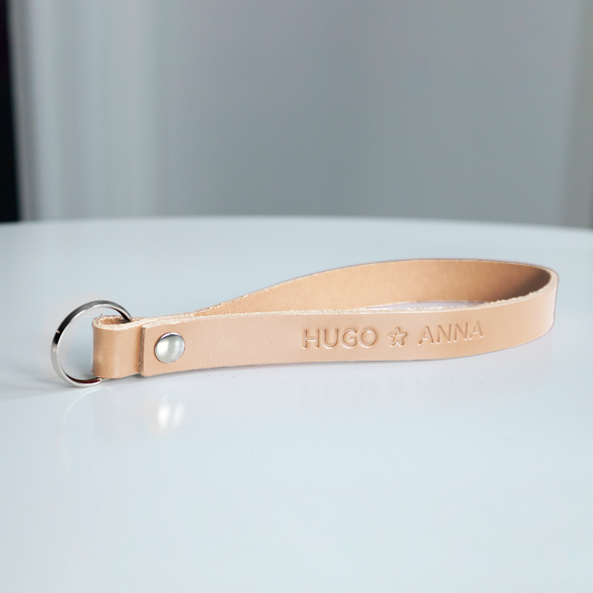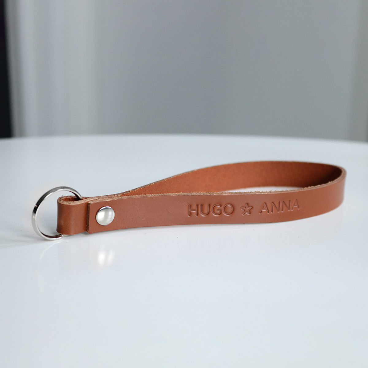 Æstetik og funktionalitet går i ét med vores håndlavede læder nøgleringe, skræddersyet med din personlige tekst. Vores nøgleringe er ikke bare en stilfuld accessory, men også et unikt udtryk for din personlighed eller en tankefuld gave til en, du holder af.
